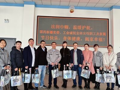 婦女節(jié)當(dāng)天,國(guó)藥新疆黨委書記、總經(jīng)理陳振陽攜黨委班子成員和工會(huì)委員為女職工送上了鮮花和禮品,向全體女性職工致以誠(chéng)摯的問候和美好的祝愿。